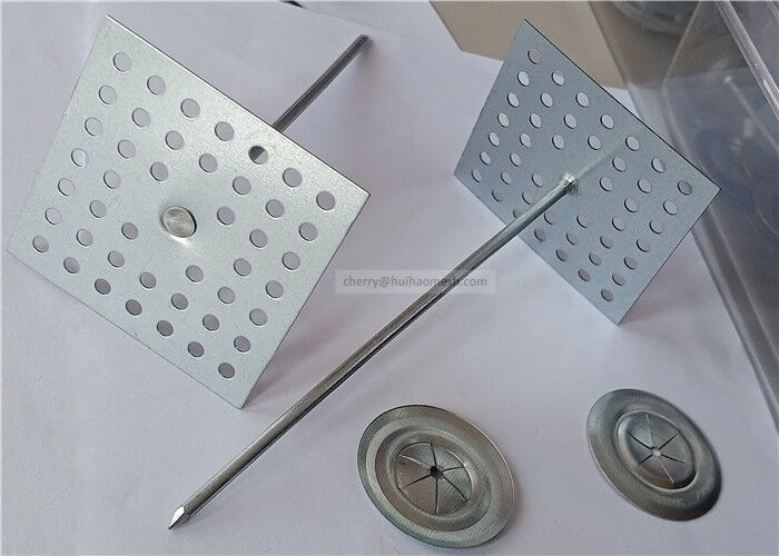 Perforierte Isolationshänger bestehen aus Metallnageln und quadratisch perforierter Basis.